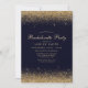 Gold Confetti Marine Blue Modern Bachelorette Party Invitation. Beau confetti vintage en or glam simple contre un arrière - plan bleu marine. Ce design personnalisé et moderne peut facilement être personnalisé avec vos propres détails.