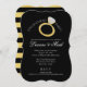 Invitation de la partie de fiançailles de bague en diamant en noir avec des rayures dorées et noires sur le dos.