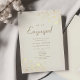 Célébrez votre amour avec cette élégante invitation à la fête de fiançailles, avec du papier d'ivoire mou, des oeuvres d'art florales d'or délicates et des polices serif et script raffinées. Un design intemporel parfait pour des célébrations pré-mariages romantiques, vintages ou formelles.