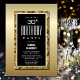 Invitation votre famille et vos amis avec cette élégante invitation de fête de 30e anniversaire noir et or.