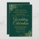 Cette belle faire-part de mariage est élégante, simple et élégante. Il présente des lettres en or sur un arrière - plan vert émeraude avec un faux feuillage floral dans chaque coin. Le design sobre est compensé par les ornements et les tourbillons ornés de l'oeuvre d'art. Le dos a un code QR personnalisable et note de détails afin que vous puissiez diriger vos invités vers un site Web pour des informations et RSVP.