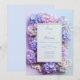Immerse your guests in a world of soft color with this vibrant hydrangea-filled design. A dense collection of pillowy lavender, pink, and purple blooms surround a crisp white center, providing a lush and layered feel. The subtle blue-to-purple gradient background adds a dreamy, ethereal touch, while the thin gold inset frame offers a hint of luxury and structure. This visual is bursting with garden-fresh energy and romantic charm. This vibrant floral frame is an ideal choice for a whimsical spring wedding or a fairytale summer garden ceremony. The rich purple and pink tones make it a standout option for a colorful bridal shower, an extravagant garden party, or an elegant evening engagement celebration. It pairs beautifully with wedding palettes featuring lilac, periwinkle, or metallic gold accents, and fits perfectly with romantic, maximalist, or botanical aesthetics.