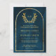 Invitation Gold Laurel Wreath Feuille Océan Bleu Mariage