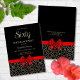 Cette invitation d'anniversaire féminine et classe présente un contour d'or mariage géométrique égyptien et un ruban arc rouge sur un arrière - plan noir. Tout le texte peut être customisé selon vos besoins.