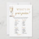 Le "Elegant Pearls & Prosecco What's In Your Purse Game" est un ajout charmant à vos festivités de douche nuptiale. Doté de perles sophistiquées et de motifs de poursuites, ce jeu invitation les invités à explorer leurs sacs à main et à dresser des points pour les articles qu'ils ont sous la main. C'est une façon amusante et interactive de briser la glace et de faire participer tout le monde, créant des souvenirs durables pour la future mariée et ses invités.
