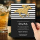 Les invitations à la fête du jour Derby présentent un faux cheval de course en parties scintillant d'or et du jockey sur bandes noires et blanches en haut et sur la partie noire en bas pour obtenir des informations sur votre fête en lettres chic. CORRESPONDANCE d'objets dans notre collection.