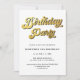 Invitation Gold Retro Script Black & White Birthday Party