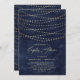 Gold Twinkle String éclaire Marine Couples Blue Douche Invitation. Couples personnalisables invitation douche avec aquarelle bleu marine arrière - plan avec des lampes à cordes dorées et élégant script. Cette invitation sera parfaite pour des douches et des événements en plein air et en soirée en couple.