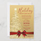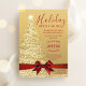 Elégant Noël / Open House / Dinner Party Invitation modèle avec "Gold Christmas Tree avec Fairy lights" & Red Ribbon. Impressionnez vos amis avec ce design d'invitation sophistiqué et élégant. Entièrement personnalisable !