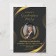 Célébrez une étape spéciale avec cette élégante invitation de Graduation Party! Doté d'une couronne de laurier doré sur un arrière - plan noir élégant, cette carte exhale le raffinement et le style. En mettant en évidence une photo centrale du diplômé, il est parfait pour honorer leur réalisation. Personnalisez-le avec le nom du diplômé, les détails du parti et l'information RSVP. Idéal pour les rassemblements formels et festifs