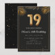 Adorable 19th birthday party invitation in a black and gold balloons design with golden tropical palm leaves. Customize with your party details and mail out to family and friends inviting them to celebrate the 19th birthday with style!