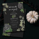 Un design gothique mariage de scénario Halloween avec des roses noirs et des vignes pendantes. Un design d'Halloween qui utilise des fleurs botaniques noires et sombres avec des typographies de calligraphie vintages. Un design gothique élégant idéal pour les thèmes mariages d'Halloween. Un design rose noir unique. Des articles de papeterie mariage correspondants et d'autres formats d'invitation de mariage sont également disponibles.