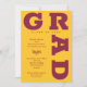 GRAD en marron gras en lettrant des courbes autour des bords de ces invitations à la remise des diplômes d'arrière - plans d'or jaune. Objets et plus de couleurs dans notre collection.