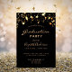 Une carte d'invitation glamour pour une fête de remise de diplômes 2025 (ou toute année) pour lui et elle. Un arrière - plan noir décoré de faux étoiles dorées. Personnalisez et ajoutez un nom et des détails du parti. Le texte Graduation et le nom sont écrits avec un script de style à la main moderne. Texte de couleur dorée. Retour : noir arrière - plan et étoiles d'or.