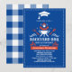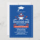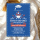 Linda invitación a la fiesta "Backyard BBQ" incluye un motivo de cierre de graduación, un elegante texto personalizado con fuentes rústicas y modernas, Se puede personalizar el fondo azul marino oscuro y el trenzado de manteles de gingham en la parte posterior de la tarjeta. Perfecto para una fiesta de graduación al aire libre.