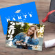 Ce design comprend un grade de diplômé moderne bleu azur, avec une photo simple minimaliste images, pour les lycéens ou les lycéens, un modèle moderne de tableau mortier, avec une classe de diplômés de 2023 ans, avec un style de typographie design créatif, pour une remise des diplômes des grandes fêtes, un invitation photo sur mesure fantasque, un modèle photo plein saigné, un style moderne invitation de la grande partie