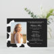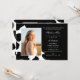 Vache Imprimer la graduation faire-part et invitation en noir et blanc avec cadre carré photo cube à l'arrière avec la chambre pour 4 photos en couleur complète supplémentaires.
