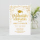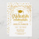 Graduation Party Invitation avec Confetti Elégant design simple et moderne en blanc avec fausse parties scintillant or et police de script. Parfait pour une soirée élégante.