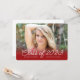 Cette invitation à la fête de remise de diplômes comprend un cadre photo horizontal personnalisé qui remplit l'arrière - plan entier sur le devant avec une bande rouge sur le fond et un texte de style manuscrit blanc qui se lit comme suit : Classe de 2017. Le dos est blanc avec la même bande rouge et accentué avec un mortier. Le texte personnalisé à l'avant et à l'arrière vous permet d'ajouter les détails de votre fête de remise de diplômes.