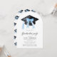 Invitation Graduation Moderne Bleu Bow Graduation Cap Arched