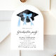 Célébrez votre graduation avec cette invitation élégante et moderne en forme d'arc, avec un arc bleu chic, une casquette de graduation classique et une typographie élégante. Parfait pour une célébration de graduation branchée et sophistiquée, ce modèle modifiable est facile à personnaliser pour l'impression ou le partage numérique. Une façon intemporelle et élégante pour les clients invitations à votre étape spéciale! 💙 🥂