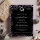 Une invitation moderne et élégante à la remise des diplômes. Un arrière - plan noir décoré de poussière de parties scintillant violette et violette. Personnalisez et ajoutez un nom, une année et des détails.