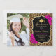 Invitation à la fête de remise des diplômes avec votre photo. Caractéristiques léopard poster de animal, police de script, roses roses roses, savsel et confetti. Elégant design fuchsia noir blanc chaud rose avec faux or parties scintillant. Parfait pour une célébration élégante.