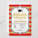 Graduation Party Invitation avec Red Gold Stripes Design élégant et simple avec fausse parties scintillant or et police de script. Parfait pour une soirée élégante.