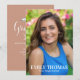 Ce design comprend une carte de faire-part photo de graduation, une invitation d'image diplômée, pour la classe de votre année de script, une police de typographie calligraphie classique, avec un design moderne design chalkboard élégant. parfait pour une grande fête élégante, pour le début du lycée ou de l'université, avec mortier Orange Rust, tassel senior invitation, et une photo entièrement saigné plan