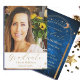 Célébrez le nouveau Graduate avec une soirée thématique "portée pour les étoiles" Lune et étoiles sur un arrière - plan céleste ciel. Une seule photo personnelle du diplômé est sur le devant de l'invitation et facilement échangée pour la vôtre. Le lycée et l'année de remise des diplômes sont également facilement échangés pour vos propres informations.