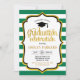Invitation de la fête de graduation avec des bandes blanches vertes. Design simple et élégant, avec une fausse parties scintillant d'or et de police de script. Parfait pour une soirée élégante.