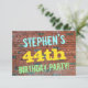 Ce design amusant d’invitation à la fête d’anniversaire comporte un message comme "44e FÊTE D’ANNIVERSAIRE DE STEPHEN!", où le nom peut être personnalisé, sur le devant. L'arrière - plan est représenté par un mur en brique composé de briques de couleur rougeâtre. Le texte de message personnalisable sur le devant présente des couleurs comme le bleu, le jaune et le vert, et il a un aspect inspiré de celui des graffitis peints. Le verso comporte un message personnalisable qui pourrait inclure des détails pertinents sur la fête d'anniversaire. Des invitations à des fêtes d'anniversaire comme celle-ci pourraient être une façon amusante pour la famille et les amis invitations d'une fête d'anniversaire organisée pour quelqu'un qui célèbre son quarante-quatrième anniversaire. [~Z0000287]