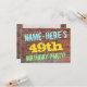 Ce design amusant d’invitation à la fête d’anniversaire comporte un message comme "NOM-HERE’S 49th BIRTHDAY PARTY!", où le nom peut être personnalisé, sur le devant. L'arrière - plan est représenté par un mur en brique composé de briques de couleur rougeâtre. Le texte de message personnalisable sur le devant présente des couleurs comme le bleu, le jaune et le vert, et il a un aspect inspiré de celui des graffitis peints. Le verso comporte un message personnalisable qui pourrait inclure des détails pertinents sur la fête d'anniversaire. Des invitations à des fêtes d'anniversaire comme celle-ci pourraient être une façon amusante pour la famille et les amis invitations d'une fête d'anniversaire organisée pour quelqu'un qui célèbre son quarante-neuvième anniversaire. [~Z0000287]