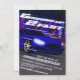 Mettez vos moteurs en marche et courez jusqu'à la ligne d'arrivée pour célébrer l'anniversaire de votre fils. Cette invitation unique a été dessinée numériquement pour illustrer une voiture de sport très rapide lors d'un concours de course de rue nocturne où personne ne peut rattraper