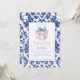 Cette invitation de Noël a un design primitif du grand-millénaire avec un cadeau rose attaché à un arc de la Chinoiserie. L'avant et l'arrière ont un motif de damas de coordination.
