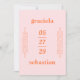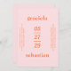 Faire-part de mariage moderne avec un style audacieux et typographique avec un nom en haut, un en bas et votre date en milieu. Les détails de votre événement se trouvent de part et d'autre. Le thème de couleur arc-en-ciel sherbet (rose et orange) et peut être modifié dans l'outil d'édition de conception. Cette décontractée invitation de style tropical est idéale pour un mariage informel de printemps ou d'été.