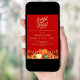 Une couleur arrière - plan rouge profonde. Décoré de fleurs citrouilles et orange et jaune. Personnalisez et ajoutez les détails de la fête. Texte : Grateful and Blessed.