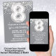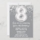 Gris et argent 8e anniversaire invitation à la fête à l'âge de 8 ans invitation à la fête avec parties scintillant et écriture de script moderne et ballons de papier amusant.