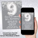 Gray and silver 9th Birthday party invitation age 9 anniversaire invitation avec noir blanc argent avec écriture de script moderne et ballon en papier amusant.