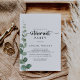Cette invitation verte à la retraite d'eucalyptus est parfaite pour un événement rustique. L'aménagement comprend des branches et des feuilles d'eucalyptus botaniques élégants dessinés à la main dans des aquarelles.