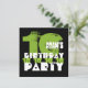 GREEN BLACK 10th Birthday Party 10 Year Old V02B Cette invitation avec son grand et audacieux numéro et sa lettrage amusant fait une invitation amusante pour une fête d'anniversaire d'enfant. Vous pouvez modifier la couleur du texte pour un aspect différent. Personnalisez avec le nom de votre enfant et les détails de votre fête !