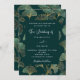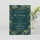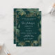 Arrière - plan vert décoré d'un motif en feuille de ginkgo. Personnalisez et ajoutez vos noms et les détails du mariage. Lettres blanches.
