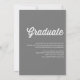 Invités Invitations à votre événement avec cette invitation personnalisable de graduation photo. Il dispose d'un script rétro audacieux et d'une typographie classique. Personnalisez en ajoutant vos détails. Cette invitation de graduation grise est disponible dans d'autres cartons et couleurs.