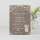 Invitation Gris rustique Mason Jar Fleur String Lumières Mari