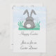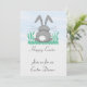 Un petit lapin gris doux avec son revêtement arrière que vous se repose dans l'herbe verte regardant fixement les cieux bleus. Il veut souhaiter à chacun de Joyeuses Pâques. Recueillez vos amis et famille à votre événement d'amusement cette année. Rendez-le spécial en envoyant ces invitations adorables. Tout le texte sur l'avant et le dos peut être customisé.