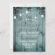 Bois rustique et lumières de jarres de maçonnerie, invitations de renouvellement de vœux d'anniversaire - Ancien, aspect peint en sarcelle, planches de bois de plage vintage. Le dessus est orné de lanternes rustiques de jarres de maçonnerie vintage "lumineuses" suspendues et de guirlandes lumineuses extérieures romantiques. Porte la mention "We Still Do" en lettrage de style western avec "Vow Renewal" en dessous en lettrage sarcelle et l'année d'anniversaire au-dessus en lettrage incurvé. Les détails de la fête d'anniversaire, y compris les informations de RSVP, sont ci-dessous. Le dos a un fond sarcelle uni coordonné, qui peut être changé en n'importe quelle couleur que vous préférez. Remarque : Toutes les images sont imprimées. Utilisez le bouton Personnaliser pour changer quoi que ce soit - styles de police, tailles, couleurs ou placement. Invitations romantiques de campagne pour l'été ou l'automne, fête d'anniversaire rustique