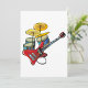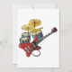Une guitare électrique en rouge avec un tambour derrière. Cette conception semble vraiment efficace sur ces Invitation