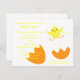 Célébrez un nouveau paquet de joie après la naissance avec cette invitation de baby shower de naissance de poteau ! Le petit poussin adorable saute avec joie après la hachure et vous aussi !