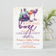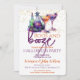 Une magnifique invitation à la fête d'Halloween violet orange "boos and booze". Ce design marrant violet et orange présente des bouteilles de potion magique éffrayantes et deux verres à cocktails. Facile à customiser avec les détails de votre fête d'Halloween.