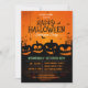 Invitation de la fête d'Halloween aux couleurs traditionnelles d'Halloween orange et noir. Citrouilles noirs et chauves-souris volantes et araignées contre un arrière - plan orange.